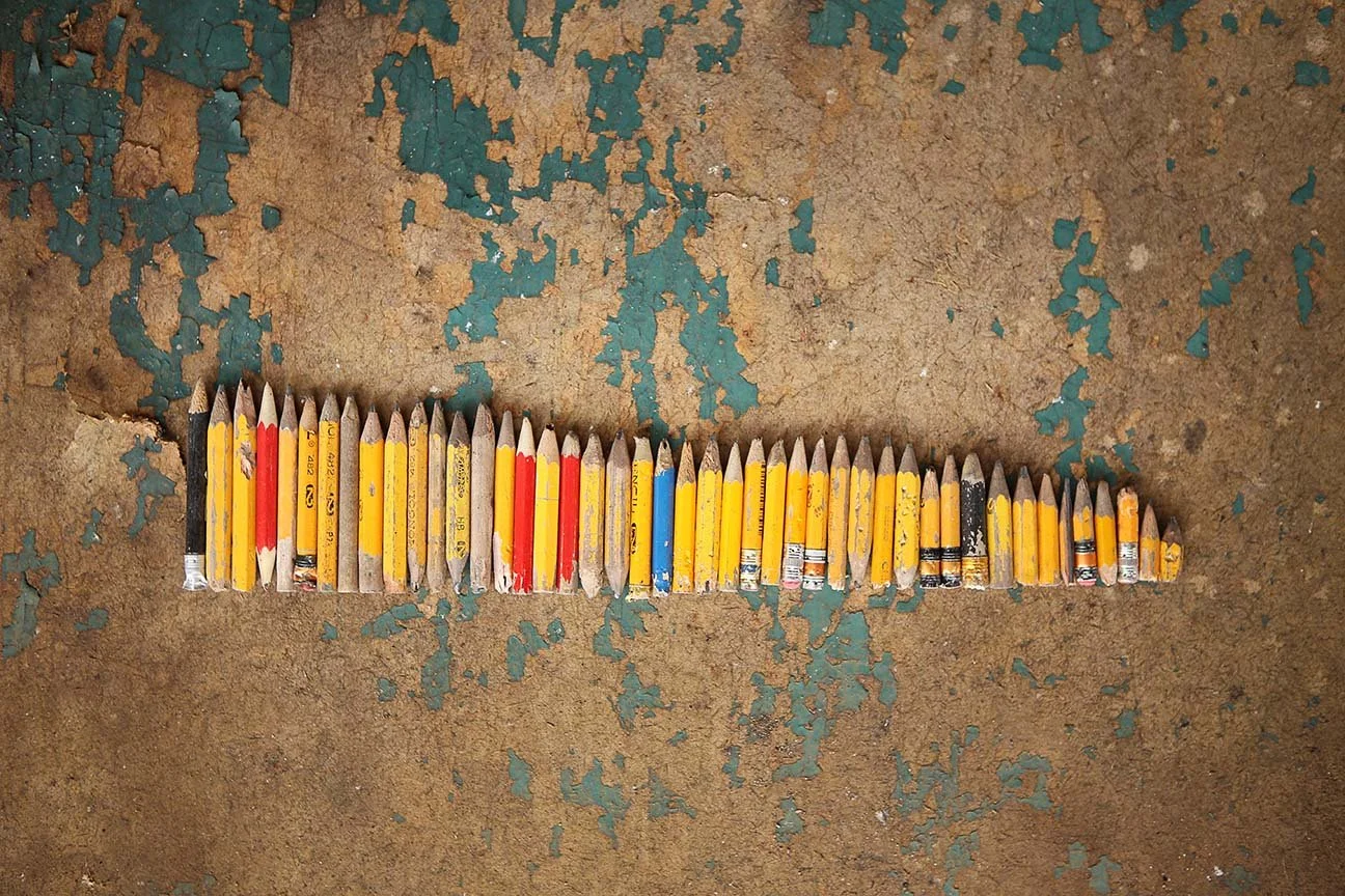 Beneath these pencils lies an old blackboard — chalk-dusted and full of memory. The teachers who stand before it were once these very children. When life gave them the chance to leave, some turned back. Not out of obligation, but out of love — pouring themselves into the next generation the way a pencil gives itself to the page. Completely. All the way to the end.