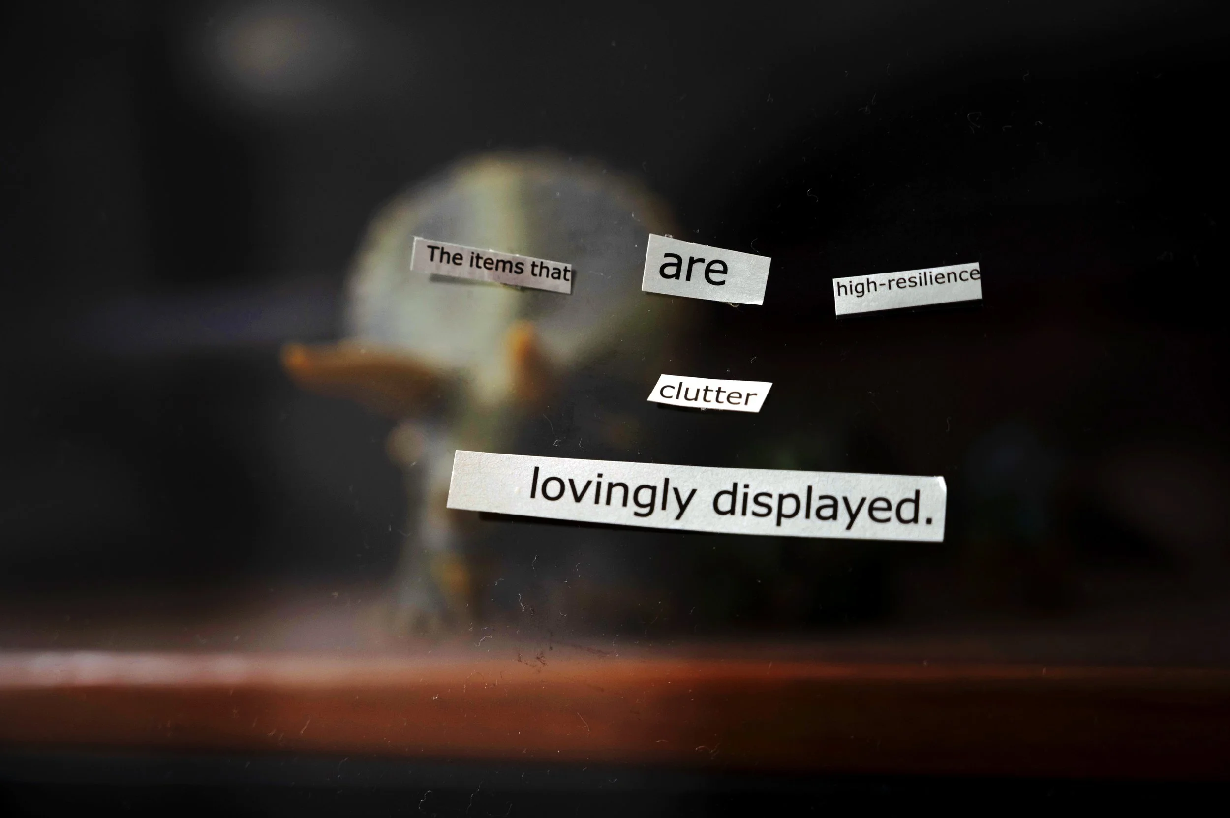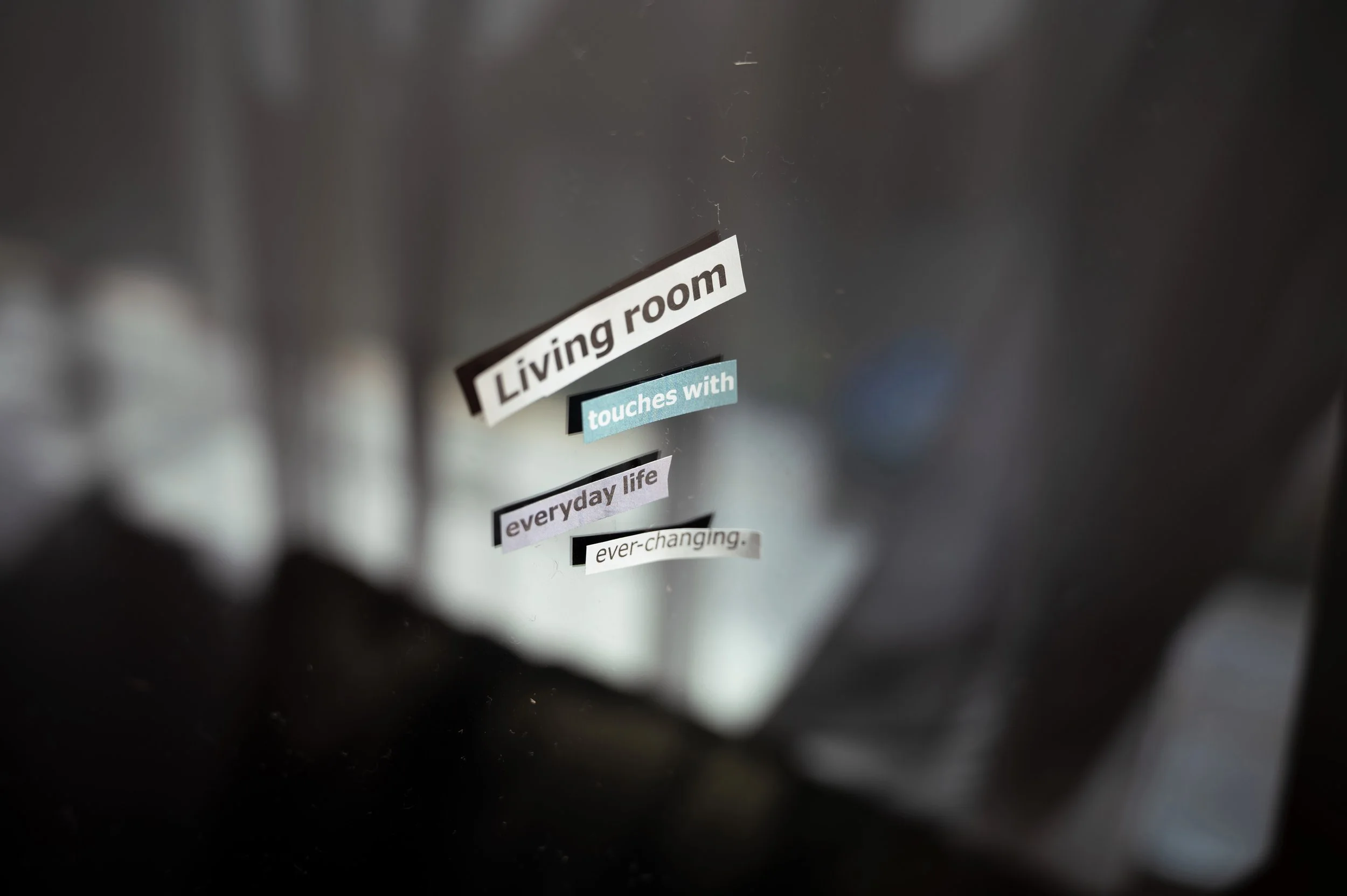 This body of work focuses on the materiality of the share house through photography, while also highlighting the tension of the share house being seen as a “temporary” and “impermanent” space. Utilising a plastic frame that is both transparent and reflective. This technique shifts the share house into a mixture of textures, shapes, light, and shadow, changing the way we view familiar elements such as staircases, hanging laundry, curtains, everyday objects, etc. The frame also captures dust, which is the ultimate amalgamation of the share house's materiality, as the dust is made up of everyone and everything in the space, both past and present. The works also incorporate “fridge magnet” poems created from text cut out of Ikea catalogues. Throughout the body of work, the poems focus on the textuality, tensions, and, at times, the absurdity of home spaces. The text is affixed to the physical frame, creating an in-image collage and adding its own material dimension to the images.