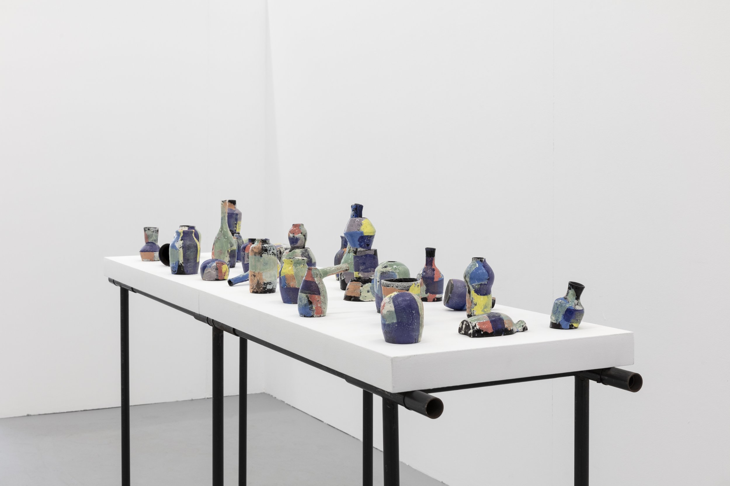As a ceramic artist I am inspired by the aesthetics created by the glitches in computer screens. When an image or a video file gets corrupted the colours and shapes distorts. This visual language is associated with buttons, pixelated colour and geometric shapes. I use this imagery across my ceramic form.