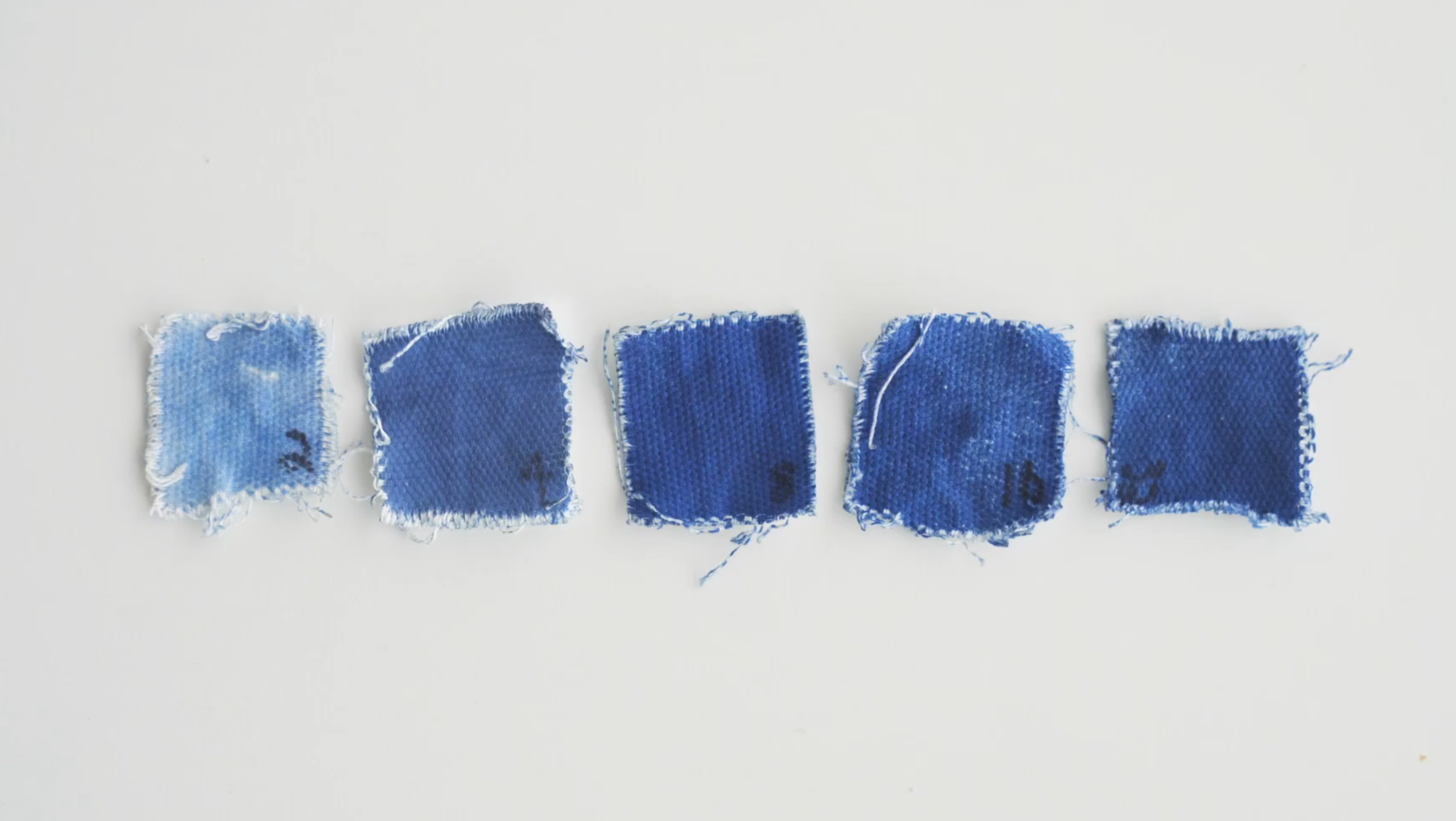 Test when you reach ‘maximum blue’ by exposing several squares of material - doubling the exposure time between each square (2 minutes, 4 minutes, 8 minutes, etc). Wash these squares after exposing, and when the colour stops getting more intense between steps, you’ve reached the ‘maximum blue’. It can be useful to use a hydrogen peroxide bath (see the washing section below).